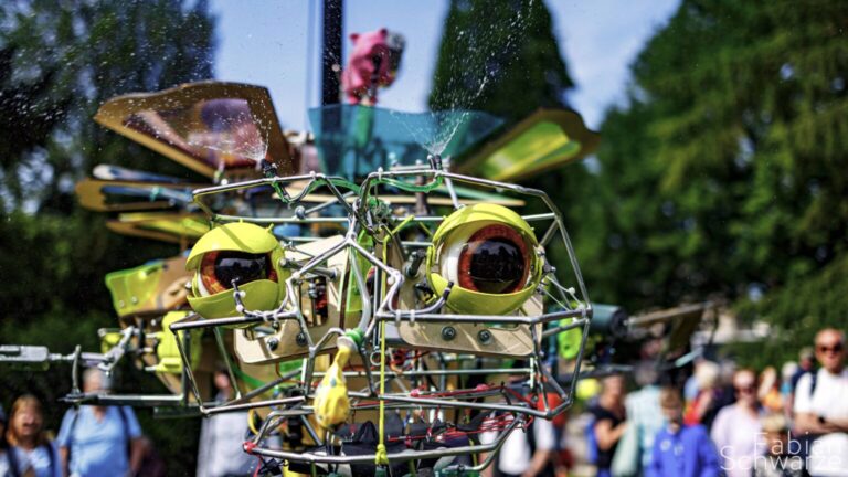 Jak už název napovídá, tato instalace silně připomíná hodiny, ačkoli z ní čas odečíst nelze. “Hodiny?!” Těšte se na čtyři metry vysokou mechanickou instalaci s nespočtem pohyblivých částí, kterou udržuje v chodu bláznivý vynálezce. “Mé sochy a instalace jsou často výsledkem nápadů nebo fantazií, které mi dlouho ležely v hlavě. Jasným příkladem jsou projekty “Watch?!” a “Garuda”, dvě snová díla posílená mým inženýrským vzděláním,” říká maker Matthias Vijverman.