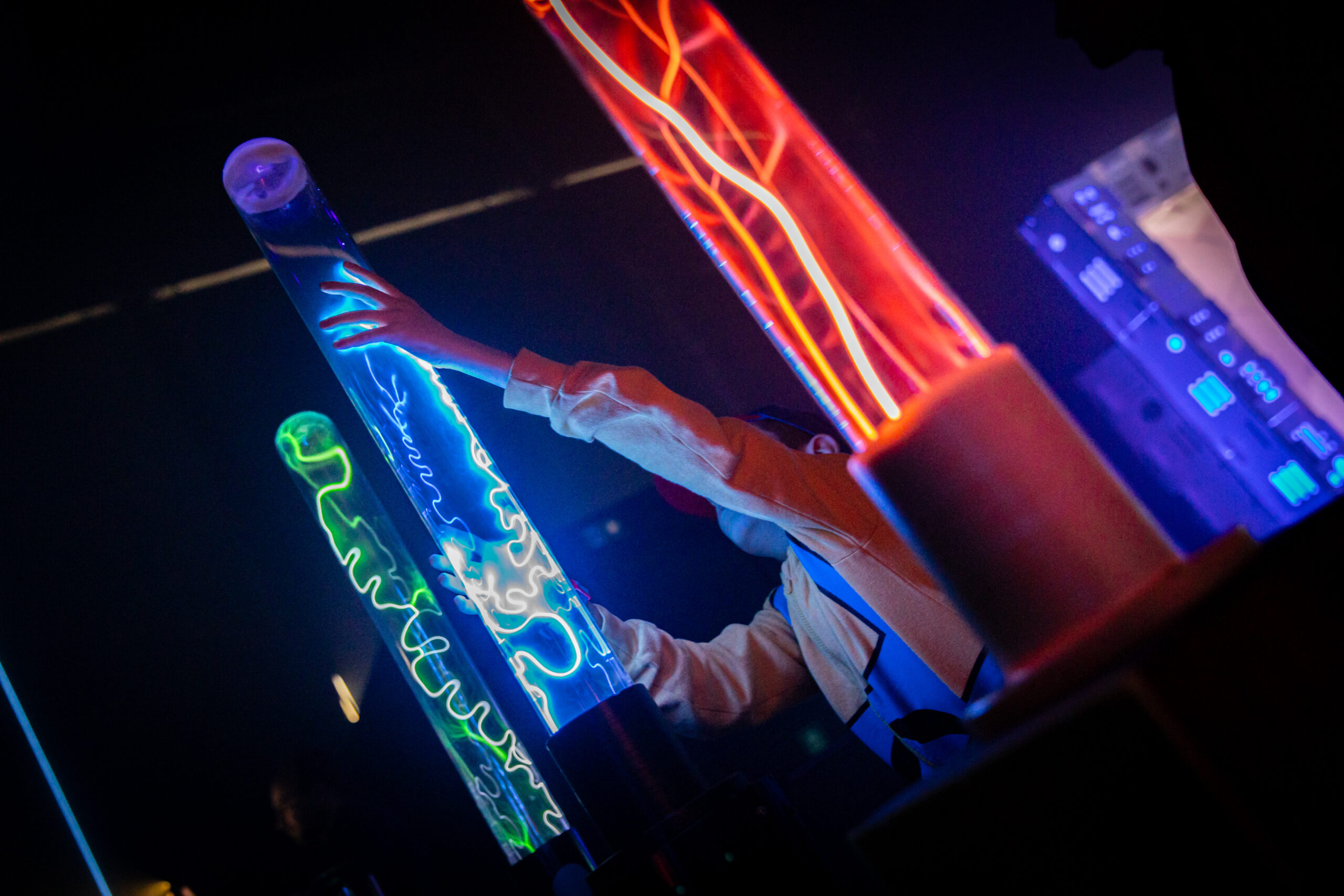 Blesky, výboje a vysoké napětí! Tady uvidíte Teslovy transformátory v akci, tančící plazmové efekty a elektrické jevy, které vás ohromí i pobaví.