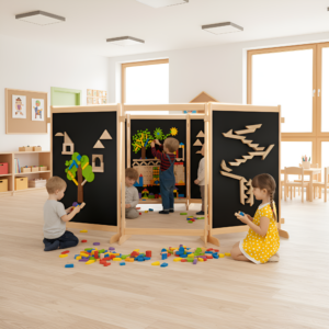 Hrajeme si se dřevem. Přijďte si vyzkoušet, co všechno dokáže obyčejné dřevo. Na černé plstěné tabuli si můžete sami tvořit – skládat dřevěné dílky, stavět vlastní obrazce, konstrukce nebo celé příběhy. Bez návodu, bez omezení. Prostě si hrajete. Vyzkoušíte si také kuličkové dráhy, které si sami navrhnete a postavíte. Pojede kulička podle plánu… nebo si…